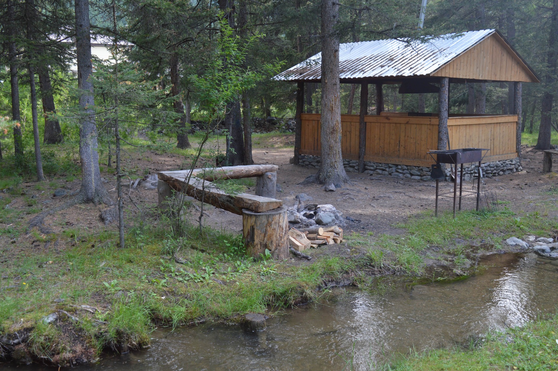 Зона для кемпинга, мангалы, баня и детская площадка.